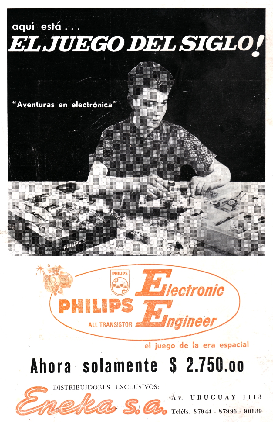 En 1967, mi madre, me regaló una caja del maravilloso juego de electrónica Philips «Electronic Engineer» (El «Ingeniero Electrónico» de Philips), que compró en el recordado «Bazar Mitre», de Montevideo.