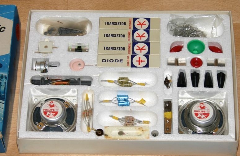 La caja permitía armar 20 circuitos, desde detectores de humedad, hasta pequeños amplificadores de audio y pick-up, radios de uno a tres transistores, etc.  y el ansiado «órgano electrónico de 8 teclas».