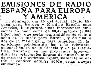 ² Alfonso Gallego «Radio Exterior Hoy», en «Escrito en el Aire», citado en La Radio en España, 1923-1993, Lorenzo Díaz (ob.cit.).
