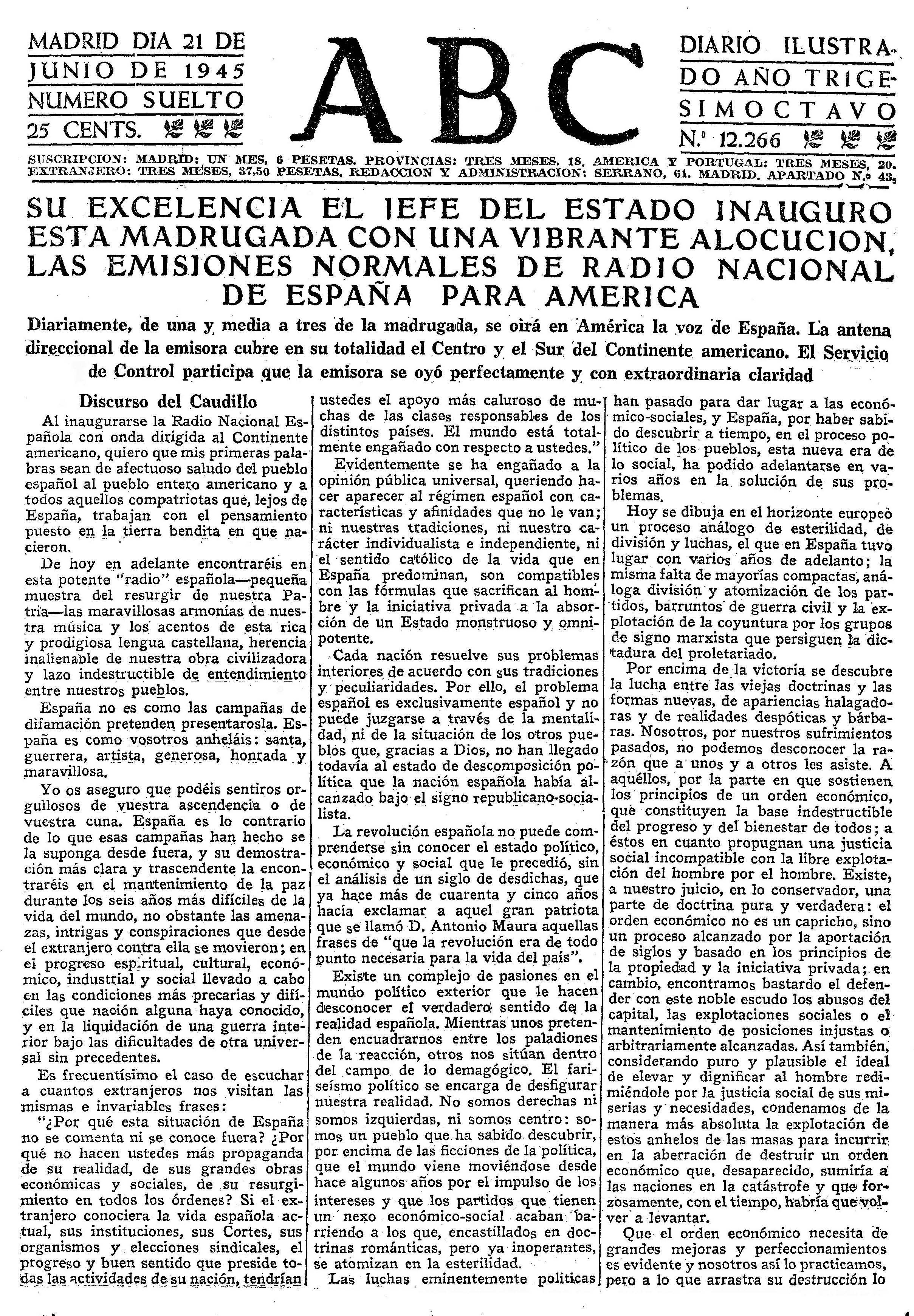 Discurso inaugural, publicado en ABC, Madrid,el 21 de junio de 1945