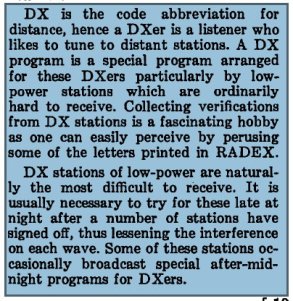 «DX es distancia». Definición de DX y sus variantes, que fue incluida en la revista RADEX de marzo, 1931. ¡Tampoco es una abreviatura!.
