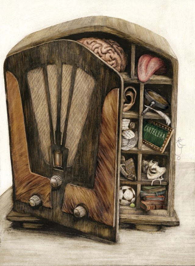 En su página personal, encontré una de las más bonitas y sugerentes alegorías gráficas sobre la Radio que he visto desde siempre. Publicada originalmente en la revista «Caras y Caretas» (Buenos Aires), en 2010, la reproduzco aquí con autorización de su autor: