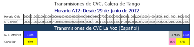 El 14 de agosto de 2012, se reporta la despedida de CVC La Voz desde Calera de Tango, para el viernes 17 de agosto. Habrá una emisión especial entre las 0900 y 1800 horas, hora de Chile, para quienes deseen captarla por última vez según el esquema vigente.