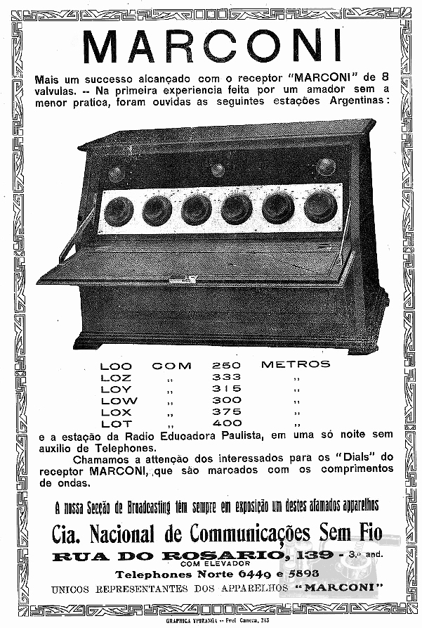 Esta otra lista, fue publicada en el número siguiente, el 17, de octubre de 1926. Se trata de captaciones realizadas por el aficionado J. Muniz, gerente de la casa «FSF», de Río de Janeiro, una de las más importantes de esa plaza.