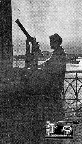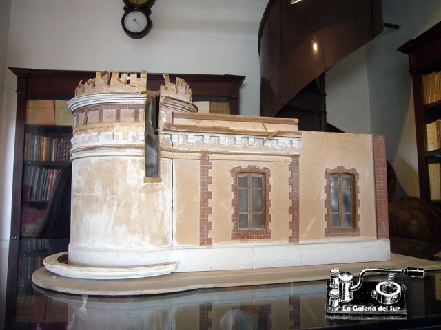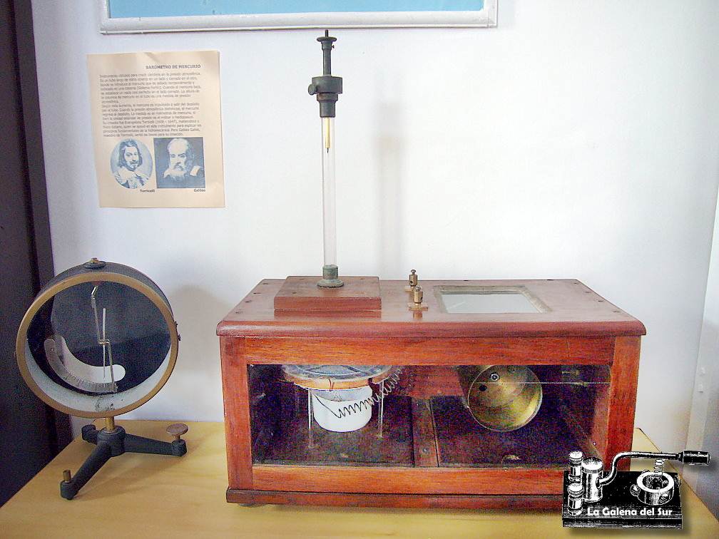 A la der.: Electrógrafo, aparato inventado por el Sr. Alberto Jorge Berta, del Servicio Meteorológico Nacional del Uruguay. Este aparato casero fue construido e instalado en el Observatorio del Colegio Pio, en tiempos en que era su encargado el Padre Pedro Caranzano. Tenía por objeto medir la electricidad atmosférica, pero no tuvo buenos resultados. (Foto Horacio Nigro, LGdS, en Museo Observatorio Colegio Pio, tomada en 2011)