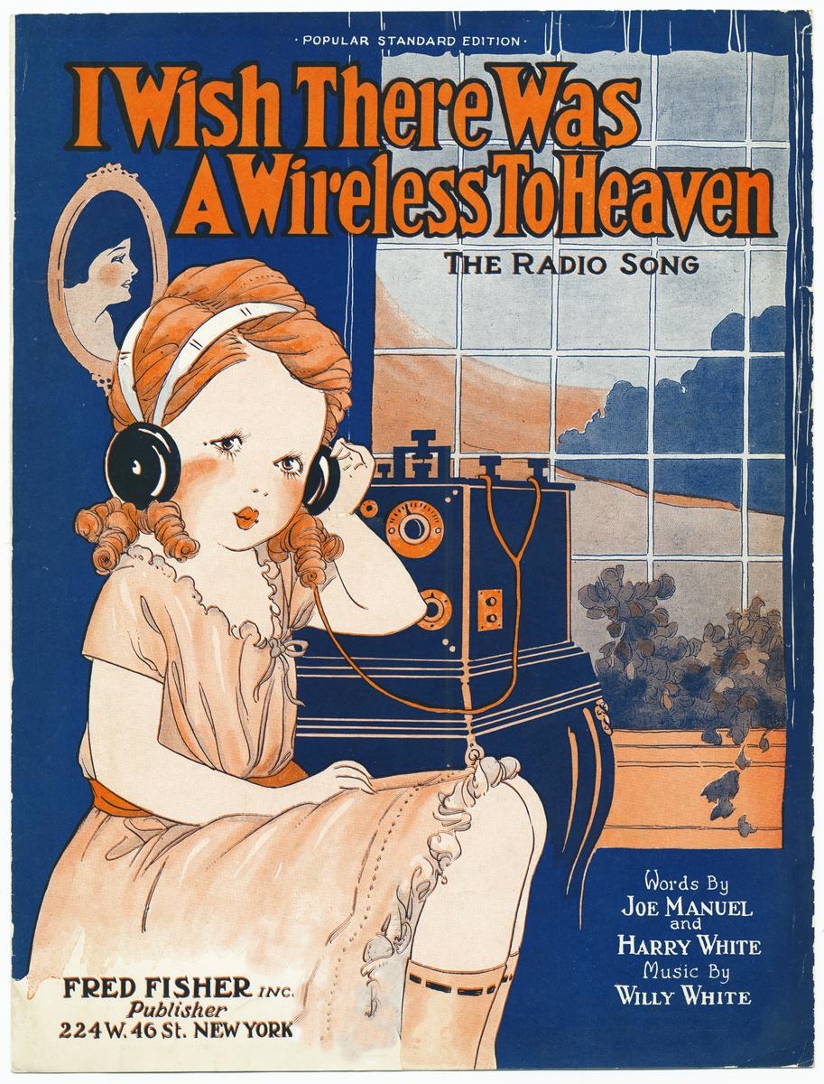 «I Wish There Was a Wireless to Heaven» es es una triste y melancólica canción creada en los EE.UU. en 1921, que refleja la fascinación por el medio Radio que estaba floreciendo en aquellos años. Un ejemplo, eso sí, muy posterior y también significativo con el fenómeno de las nuevas tecnologías de la comunicación que inspiraron temas musicales fue «Telstar» (por los británicos «The Tornados»).