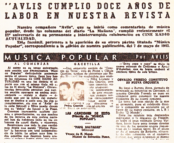 «El tango debe estarle agradecido a la radiotelefonía porque lo hiciera volver por sus fueros. Falta un empujoncito más para que la complacencia sea total. […] Orquestas y cancionistas han tenido asimismo, cabida en la radio».