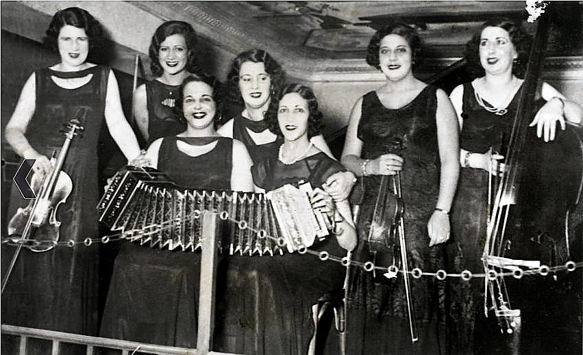Orquesta de señoritas. S. f. (Foto: Museo y Centro de documentación AGADU) Era habitual la existencia de orquestas de señoritas que interpretaban un repertorio de tango y otros ritmos.