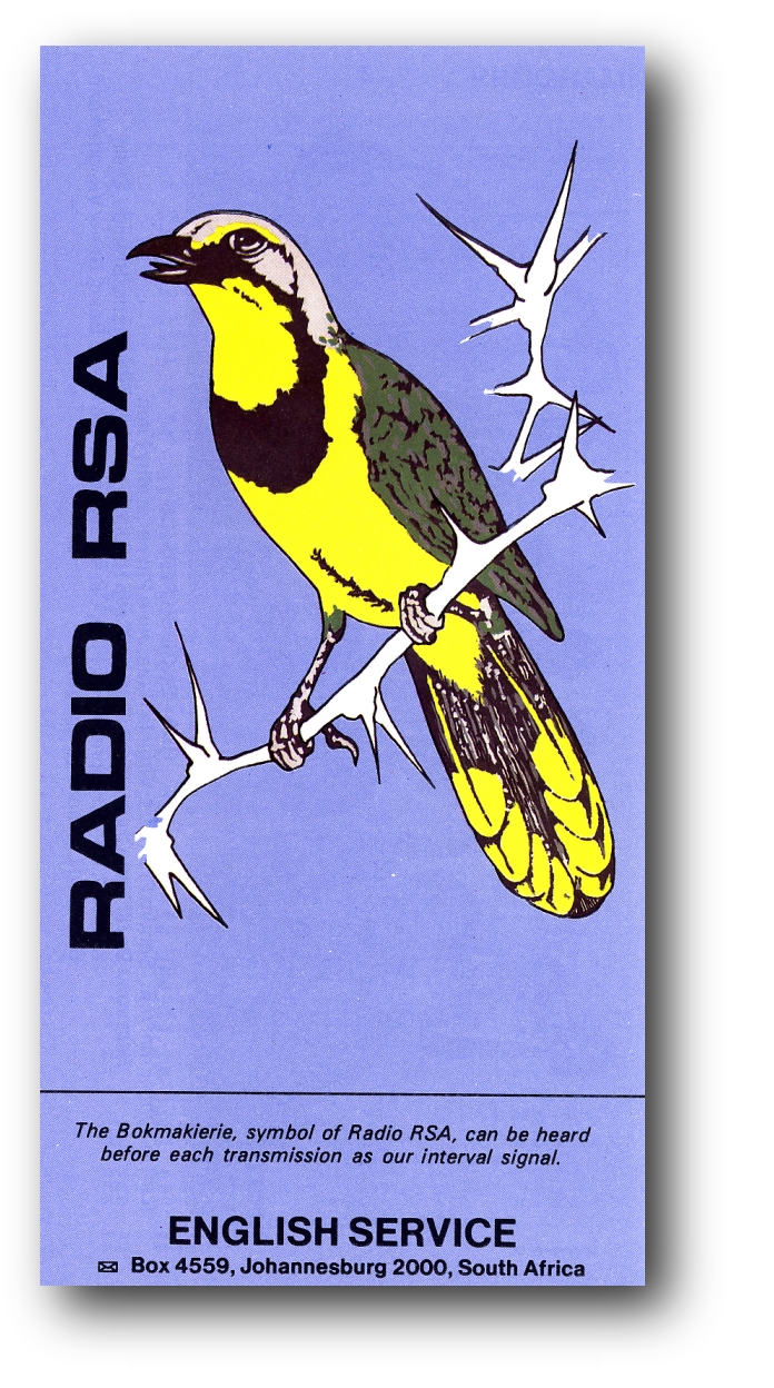 Radio RSA, la Voz de Sudáfrica, (hoy Channel Africa), utilizó una hermosa melodía en guitarra incluyendo el canto del mirlo africano (Bokmakirie).