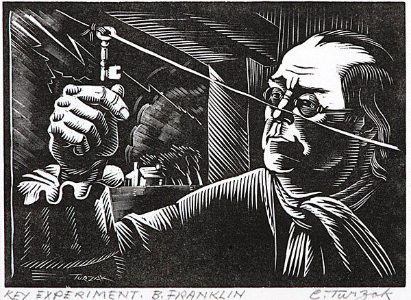Benjamin Franklin, xilografía de autoría de Charles Kurzak. (Fuente)