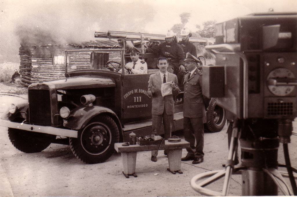 Mario De Carlo, conduciendo su programa «Hoy», por Canal 5 SODRE, la TV estatal del Uruguay, que se emitía en la tarde de los sábados, con frecuentes salidas del equipo de exteriores.