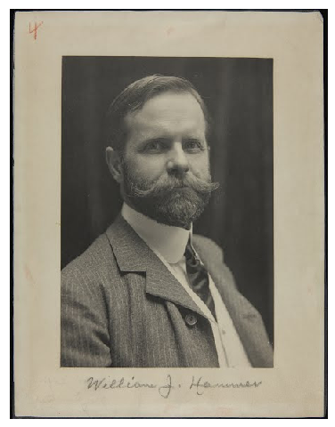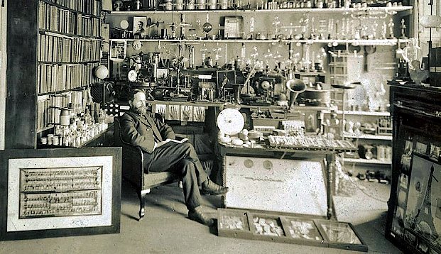 William Hammer con parte de su colección de aparatos científicos, c.1900. (Fuente).
