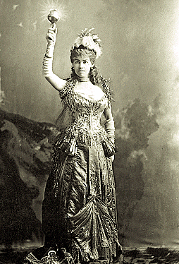 El vestido con tachuelas de luz eléctrica de la Sra. Cornelius (Alice) Vanderbilt puede haber inspirado la propia creación de Hammer para el que usó su hermana. (Fuente; Electrical Diableries | Allen Koenigsberg http://www.GardenStateLegacy.com. Issue 35 March 2017).