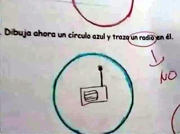 ← «Dibuja un círculo azul y traza un radio en él».