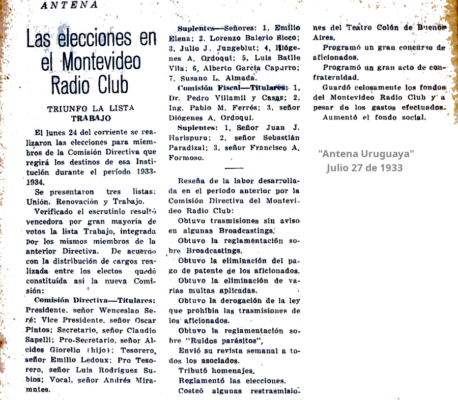 ← Elecciones en el Montevideo Radio Club. (Revista «Antena Uruguaya», 27 de julio de 1933).