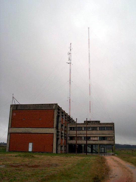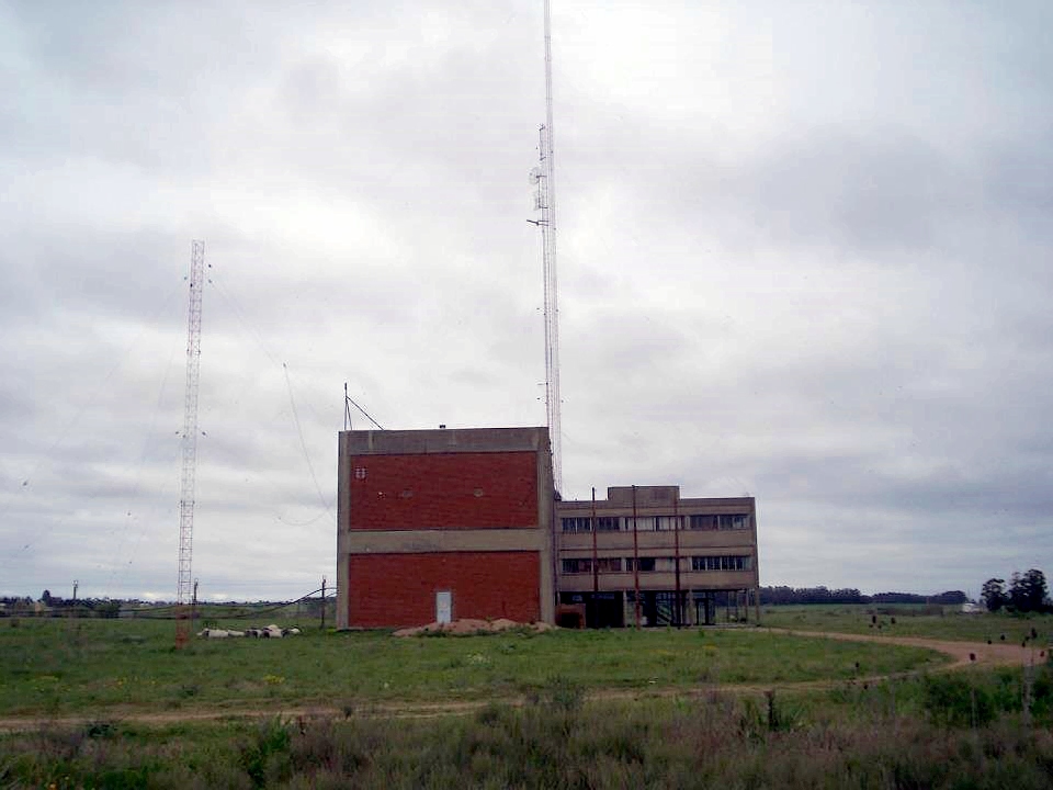 El edificio alberga los equipos trasmisores de las tres emisoras de onda media y dos de onda corta. A la izquierda se aprecia el mástil soporte de un extremo del dipolo para CXA4 (6125 kHz.), el otro extremo va a una estructura sobre un ángulo del edificio. Sobre el edificio la torre de enlaces y detrás de ella el monopolo plegado de 120 metros de altura para CX26 (1050 kHz)