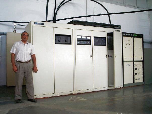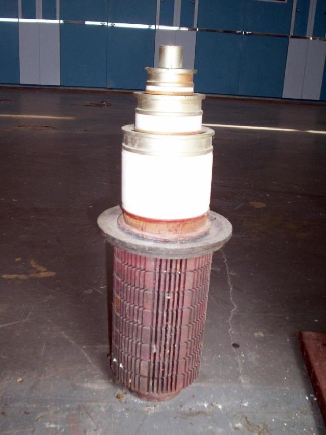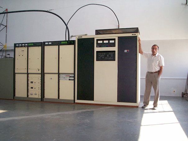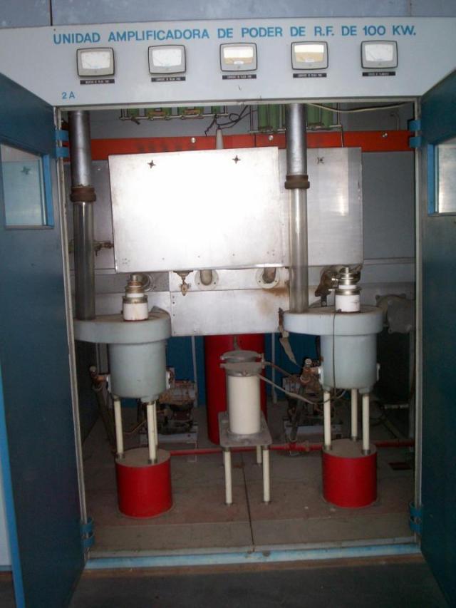 Amplificador de radiofrecuencia del trasmisor CRUL de CX-6. Dos válvulas tipo 7480 en sus cazoletas de enfriamiento por vaporización de agua. Entre ellas se aprecia un condensador cerámico para alta tensión. El régimen de funcionamiento de la etapa era de 10.000 Voltios a 16 Amperios. Me gustaba prestar servicio a este equipo porque era como acariciar un tigre... hermoso pero te podía matar en cualquier momento.