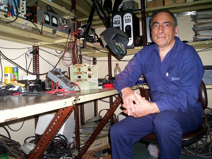 Cabina y consola de CX58 Radio Clarín, Montevideo. (foto tomada durante el Viaje de los DXistas italianos Darío Monferini y Roberto Pavanello, a nuestro país, en 2007)