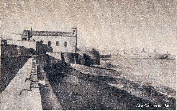 Sitio por donde entraba el cable -foto obtenida en 1927, antes de realizarse las demoliciones y construcción de las obras de la Rambla Sur, en Montevideo.
