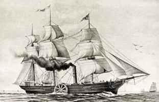 Hacía ya tiempo que surcaban los mares, pretendiendo acortar las distancias, las primeras máquinas a vapor; el «Savannah» había cruzado el Atlántico Norte haciendo la travesía parte a vapor, parte a vela; el «Great Western» y el «Sirius» habían cumplido igual proeza exclusivamente a vapor, quemado casi 400 toneladas de carbón. Era la época de la gran discusión: el sistema de hélice o el de las grandes ruedas a paletas por ambos lados de la embarcación…