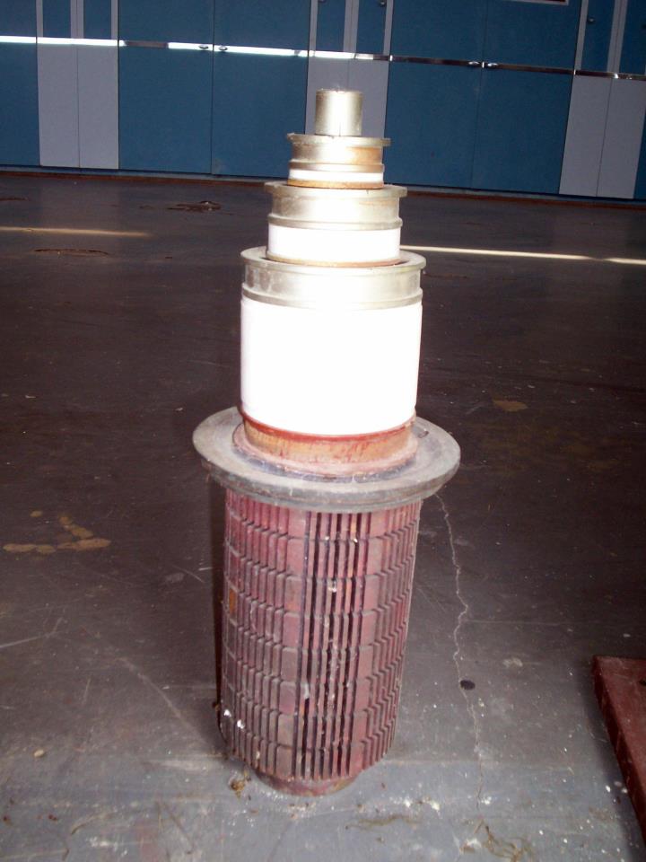 Válvula electrónica tipo 7480, enfriada por vaporización de agua, que prestó servicio en el trasmisor CRUL de 100 kW de CX6.