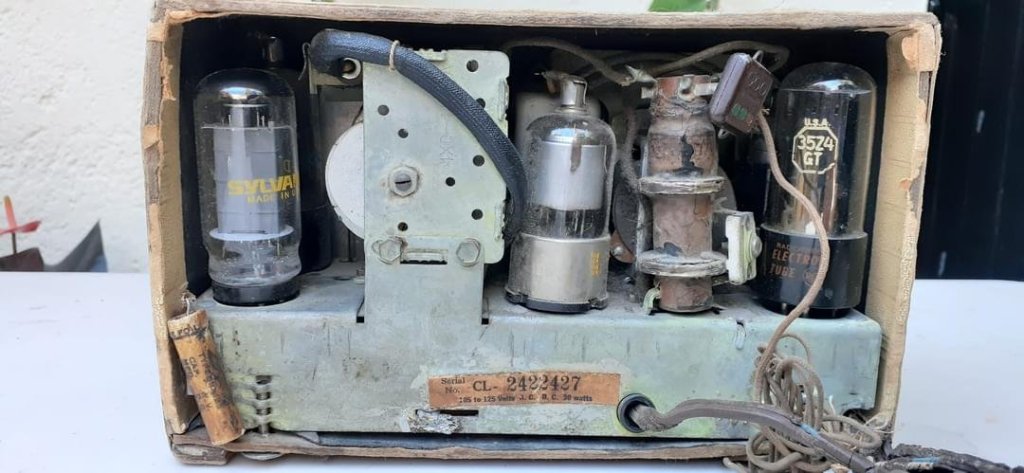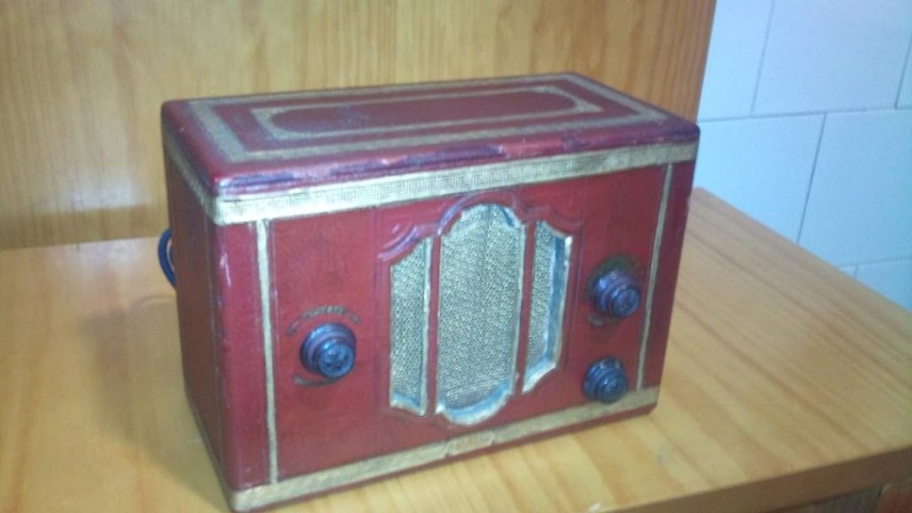 Fada 106 de 1932, tambien en cartón. Se fabricaron pocas radios con este material porque dio muchos problemas, por la cantidad de calor generado por las valvulas (sobre todo la rectificadora y la final) y la resistencia de absorción, pues el cartón no lo aguantaba.